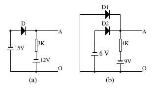 (a)圖中,拿掉二極管D可知,D陽極電位為-15v,陰極電位為-12v,D正向電壓為-3v,故D不導通,AO兩端電壓為-12V。